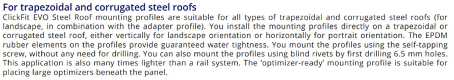 ClickFit EVO Montageprofil Trapezblechdach / quer